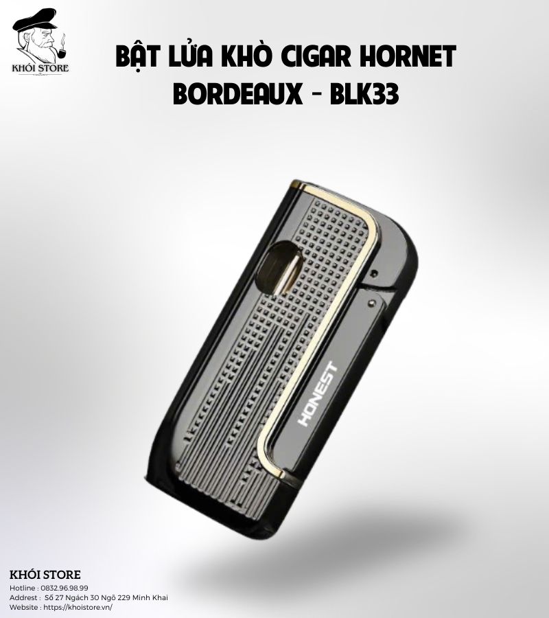 Khi thưởng thức cigar không chỉ là một thói quen mà là nghệ thuật sống, thì từng chi tiết nhỏ như bật lửa cũng trở thành điểm nhấn cho phong cách cá nhân. Với thiết kế sang trọng, hiệu năng vượt trội và độ bền đáng kinh ngạc, BLK33 – Bật Lửa Khò Cigar Honest Bordeaux chính là lựa chọn hàng đầu cho người yêu cigar tinh tế.