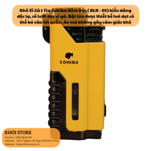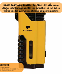Khò Xì Gà 4 Tia Cohiba Kèm Đục kiểu dáng độc lạ, có lưỡi đục xì gà. Bật lửa được thiết kế hơi dẹt có thể bỏ vào túi quần, áo mà không gây cảm giác khó chịu.