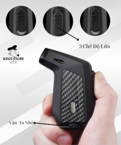 Bật lửa khò này có kích thước nhỏ gọn, thuận tiện để mang theo. Thiết kế hiện đại và chất liệu vân carbon tạo nên vẻ ngoài sang trọng và mạnh mẽ. Kích thước được cung cấp giúp người mua hình dung rõ ràng về kích thước thực tế của sản phẩm.