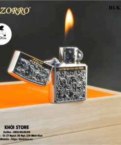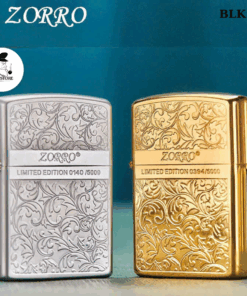Phần thân bật lửa được chạm khắc họa tiết hoa văn cổ điển dạng nổi, trải đều từ trên xuống dưới, tạo chiều sâu tinh xảo, không trùng lặp và cực kỳ nổi bật. Chính giữa là dải vàng ánh kim được khắc logo ZORRO® cùng số hiệu giới hạn – xác nhận bạn đang sở hữu 1 trong 50000 phiên bản hiếm có trên toàn thế giới. Không sản xuất đại trà, không phổ biến, BLK 27 là bật lửa dành riêng cho người thích sự độc bản.