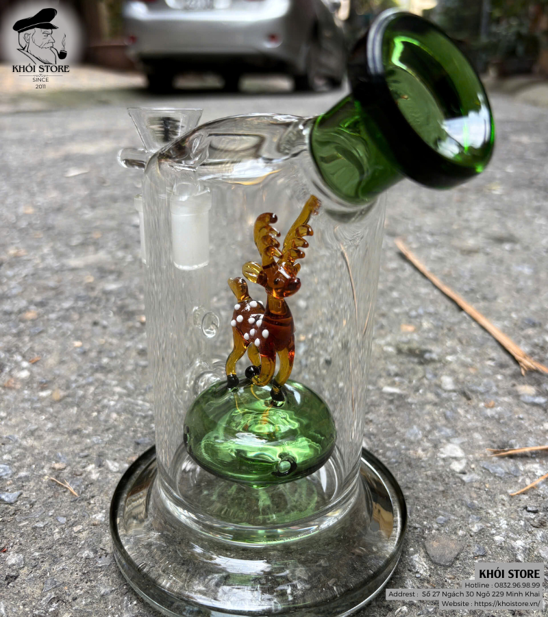 Boong thủy tinh Deer Green Marvel là một tác phẩm nghệ thuật độc đáo, kết hợp giữa chức năng và thẩm mỹ. Sản phẩm này không chỉ là một dụng cụ hút thuốc thông thường, mà còn là một món đồ trang trí đầy phong cách. Điểm nhấn nổi bật của Deer Green Marvel chính là thiết kế hình chú nai màu vàng cam rực rỡ, được chế tác tỉ mỉ và đặt trang trọng bên trong thân boong trong suốt. Chú nai này như một linh vật, mang đến vẻ đẹp độc đáo và thu hút mọi ánh nhìn.