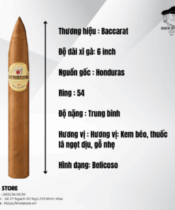 Cigar Baccarat là một trong những dòng xì gà huyền thoại đến từ Honduras, được sản xuất bởi công ty nổi tiếng Camacho – thương hiệu đã gìn giữ phong vị cổ điển của cigar Cuba xưa. Ra đời từ năm 1871, Baccarat luôn giữ triết lý “Dolce Far Niente” – tạm dịch là “Sự ngọt ngào của việc tận hưởng”. Mỗi điếu cigar của Baccarat không chỉ là sản phẩm thủ công tinh xảo mà còn là biểu tượng của phong thái thư thái, sang trọng và tinh tế trong từng làn khói.