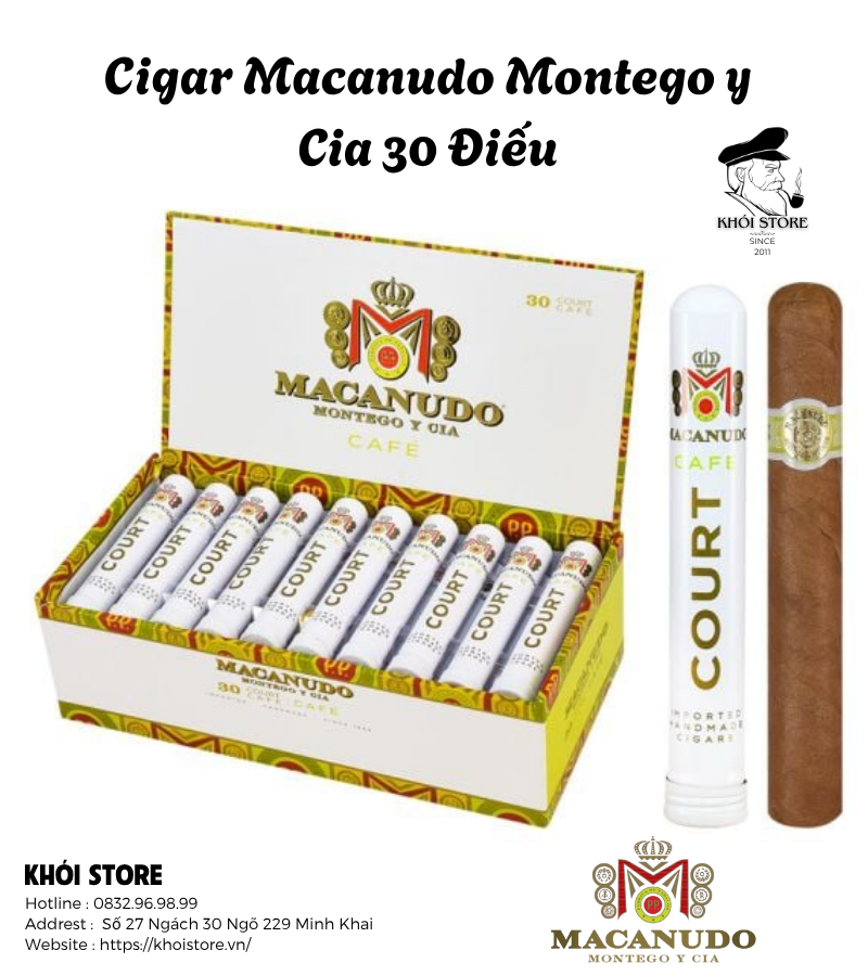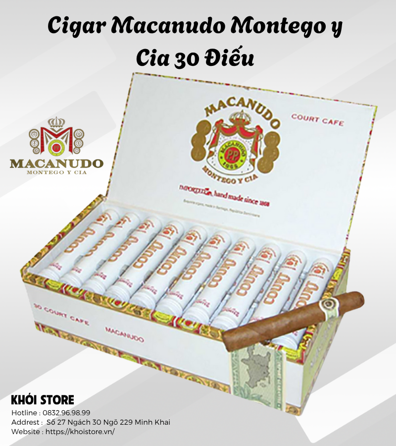 Quy cách đóng gói 30 điếu là một điểm cộng lớn cho Cigar Macanudo Montego y Cia . Mỗi điếu Macanudo Court Café thường được bảo quản trong một ống nhôm (hoặc nhựa) kín, giúp: