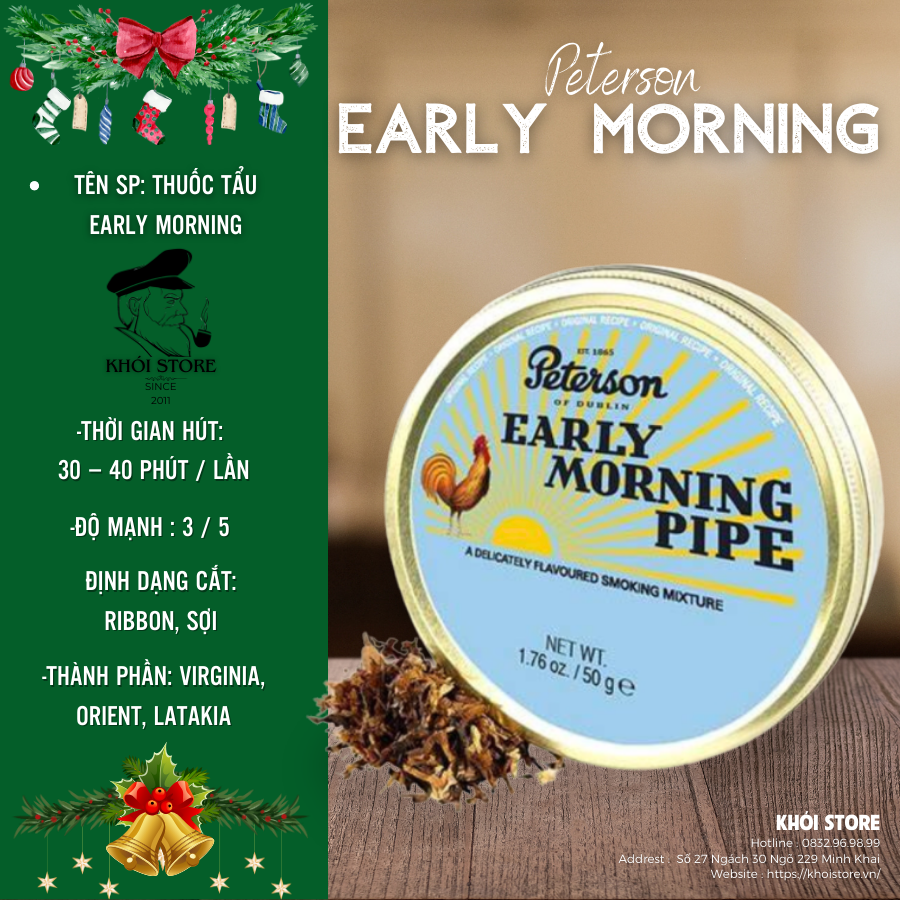 Đúng như tên gọi, Early Morning Pipe rất phù hợp để thưởng thức vào buổi sáng, khi bạn muốn một khởi đầu nhẹ nhàng, đầy cảm hứng. Đây là dòng thuốc mang lại cảm giác thoải mái, thư giãn để bắt đầu ngày mới.