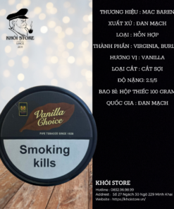- Đẳng cấp Mac Baren: Với sự tỉ mỉ trong từng khâu sản xuất, Vanilla Choice là minh chứng cho sự sáng tạo không ngừng của thương hiệu danh tiếng này.