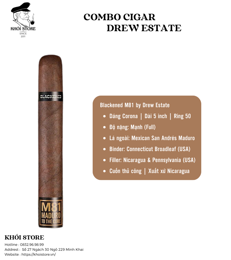 Tất cả các sản phẩm trong combo đều được cuốn thủ công (Handmade) bởi những nghệ nhân tại nhà máy La Gran Fabrica Drew Estate ở Nicaragua.