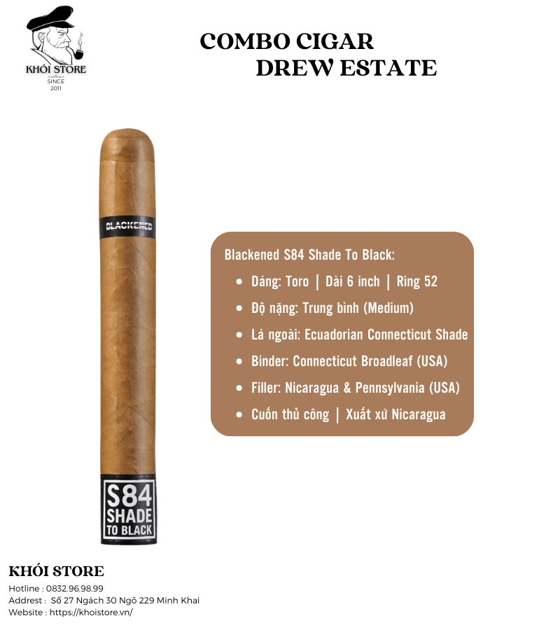 Blackened S84 Shade To Black: Phiên bản tinh tế hơn, sử dụng lá ngoài Connecticut Shade mượt mà, phù hợp cho những buổi sáng hoặc khi bắt đầu ngày mới.