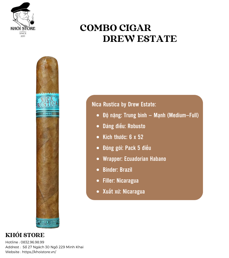 Nica Rustica Adobe: Một điếu xì gà thô mộc, đậm chất truyền thống vùng Estelí với hương vị mộc mạc và khói dày.