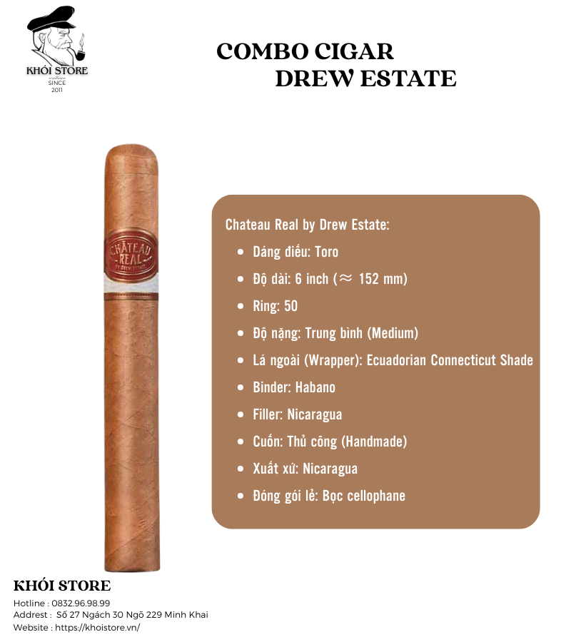 Chateau Real: Dòng sản phẩm mang phong cách cổ điển, êm ái, gợi nhớ về những giá trị truyền thống của xì gà cao cấp.