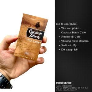 Dòng thuốc lá Captain Black Coffee mang hương vị cà phê dịu nhẹ nhưng đậm đà, được yêu thích bởi sự cân bằng giữa hương thơm thuốc lá truyền thống và mùi thơm của cà phê. Thuốc lá Captain Black nổi tiếng với việc sử dụng lá thuốc Virginia và Burley chất lượng cao, giúp cho điếu thuốc có độ êm, phù hợp với những người thích vị cà phê nhưng không muốn độ nicotine quá cao. Thiết kế điếu thuốc thanh mảnh, màu nâu trầm, được bọc trong lớp bao bì mềm truyền thống, tạo nên sự lịch lãm và cổ điển