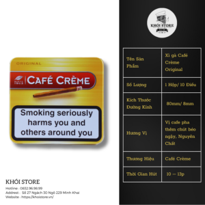 - Xì gà Café Crème Original: Với hương vị café đậm đà, ngọt ngào, đây là lựa chọn lý tưởng cho những phút giây thư giãn.