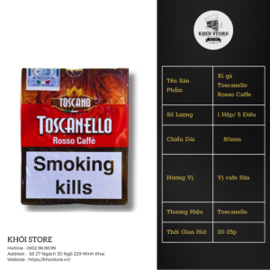 - Xì gà Toscanello Rosso Caffe: Sự kết hợp hoàn hảo giữa xì gà truyền thống và hương café, mang đến trải nghiệm độc đáo và mới lạ.