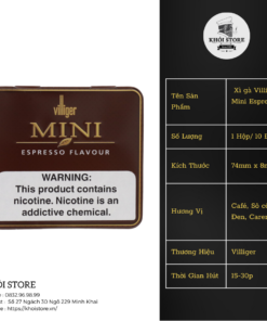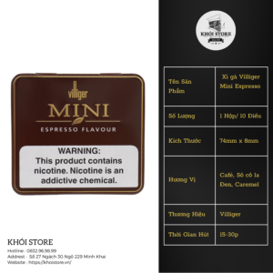 - Xì gà Villiger Mini Espresso: Nhỏ gọn nhưng đậm đà hương vị espresso, lý tưởng cho những phút giây ngắn ngủi.