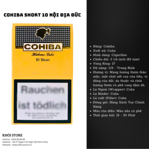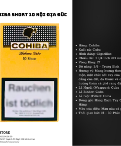 Cohiba là thương hiệu xì gà nổi tiếng của Cuba, và Cohiba Short là phiên bản mini, mang lại trải nghiệm đẳng cấp trong một thiết kế nhỏ gọn. Hương vị xì gà này rất tinh tế, với sự kết hợp giữa các loại lá thuốc được ủ kỹ, tạo nên một hương vị đậm đà nhưng không quá nặng.