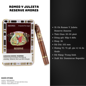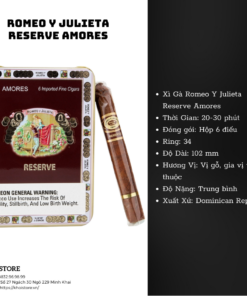 Xì gà Amores Reserve có phong cách cổ điển với lá thuốc được chọn lựa kỹ lưỡng, tạo nên một trải nghiệm hút phong phú. Hương vị của nó mạnh mẽ, đậm chất truyền thống, dành cho những người thích sự cầu kỳ và tinh tế trong từng điếu xì gà.