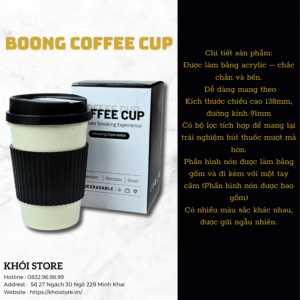 BOONG coffee cup, với cơ chế đơn giản nhưng hiệu quả, mang lại sự tiện lợi tuyệt vời, giúp bạn tận hưởng tối đa hương vị và công dụng của thảo dược. Đây là bộ đôi vừa hợp túi tiền mà lại không thể thiếu để nâng tầm trải nghiệm của bạn lên một đẳng cấp mới.