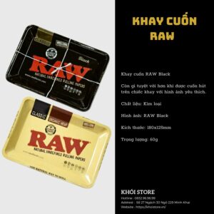 Chất liệu: Khay thường được làm từ kim loại hoặc gỗ, có logo RAW in trên bề mặt, tạo nên phong cách cá nhân và sự chuyên nghiệp cho người sử dụng.
