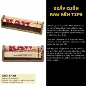 Chất liệu: Máy cuốn RAW thường làm từ nhựa cứng cao cấp, đôi khi có trục cuốn bằng gỗ hoặc sợi gai dầu tự nhiên, thân thiện với môi trường và dễ sử dụng.