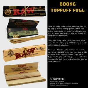 Đặc điểm nổi bật: Giấy RAW rất mỏng, cháy chậm và đều, mang lại trải nghiệm hút mượt mà và thoải mái. Giấy cuốn có các kích thước khác nhau như King Size hoặc 1 ¼ phù hợp với từng nhu cầu.