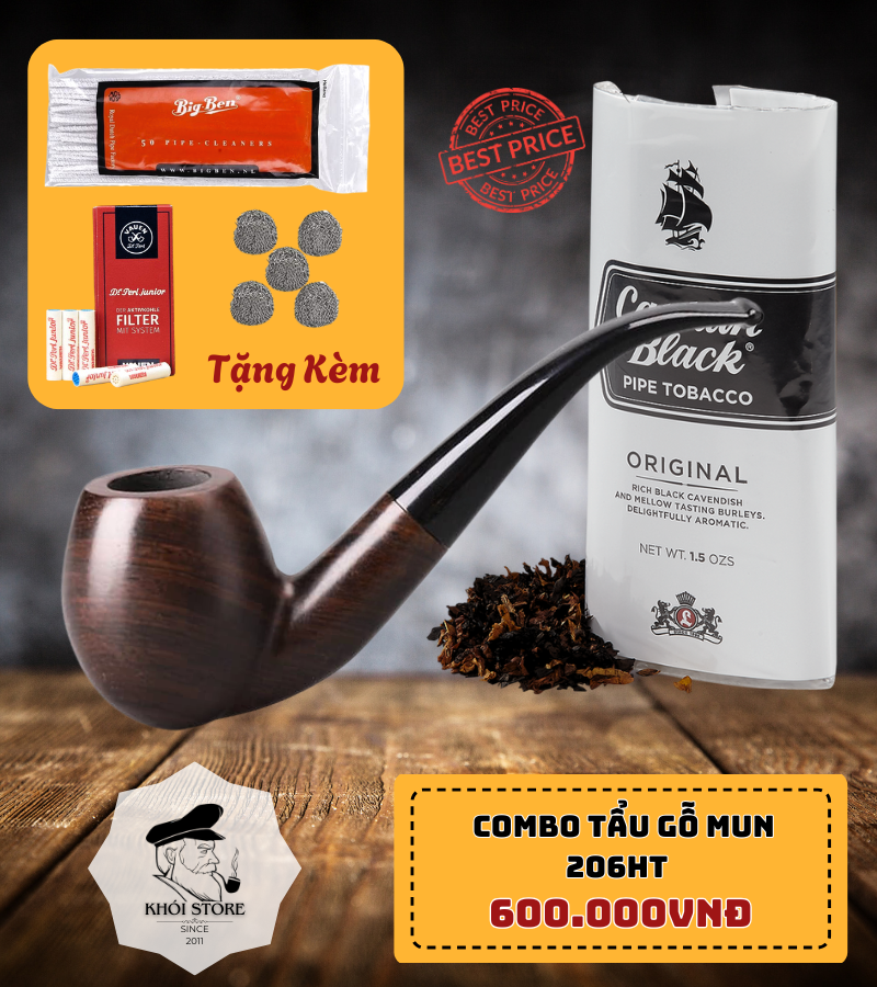 Combo Tẩu Gỗ Mun 206HT – Tinh hoa nghệ thuật hút tẩu