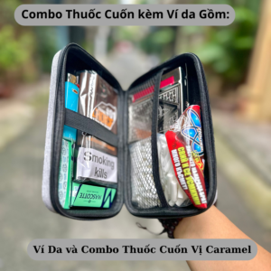 Khói Store giới thiệu anh em một combo thuốc lá cuốn hương vị caramel kèm ví da đựng cả combo cực kì gọn gàng tiện lợi.