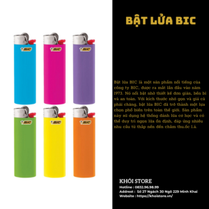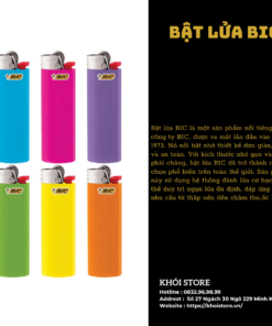 Thiết kế: Bật lửa có kiểu dáng đơn giản, dễ cầm nắm, với bộ phận đánh lửa nhạy và an toàn. Ngoài ra, sản phẩm có thể tái sử dụng và thay thế gas, giúp tiết kiệm chi phí và bảo vệ môi trường.