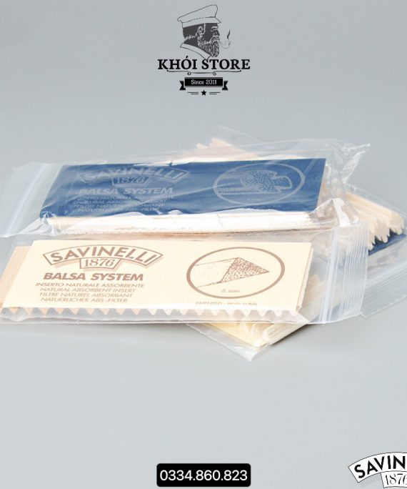 Đầu Lọc Tẩu Savinelli với Gỗ balsa có điểm đặc biệt là rất xốp và có khả năng hấp thụ các chất độc hại có trong khói thuốc lá. Hiệu quả của lọc gỗ balsa đã được công nhận bởi Trung tâm Nghiên cứu EURATOM của Ispra, Italia & bởi Trung tâm Nghiên cứu Hóa học & Môi trường Inc, Hoa Kỳ rằng
