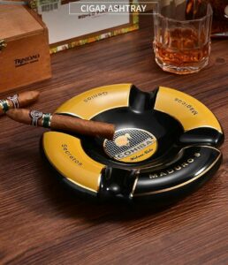 Hình dáng: Gạt tàn có thiết kế hình tròn, vuông hoặc hình chữ nhật, tùy thuộc vào phiên bản, với bốn rãnh đựng xì gà ở bốn góc. Thiết kế này giúp giữ cho các điếu xì gà không va chạm với nhau khi đặt trên gạt tàn.