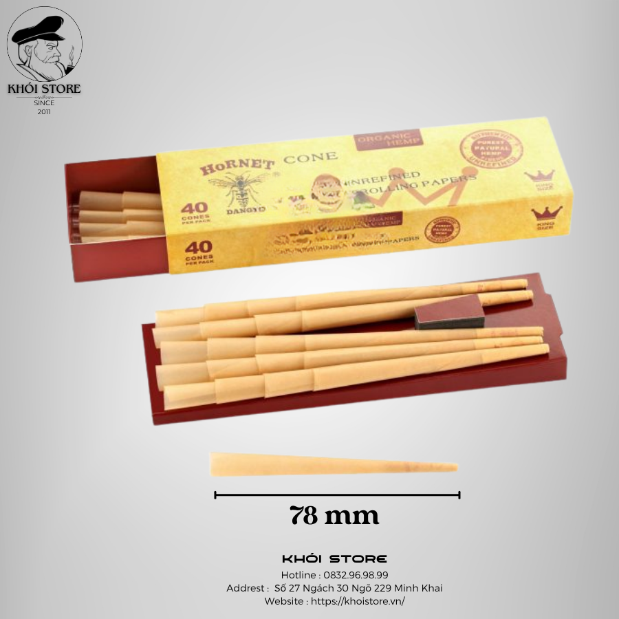 Giấy cuốn sẵn Hornet 78mm là một lựa chọn tuyệt vời cho những ai tìm kiếm sự thuận tiện, chất lượng tự nhiên và trải nghiệm cuốn thuốc lá mượt mà. Với thiết kế dạng cone tiện lợi và chất liệu giấy hữu cơ không tẩy trắng, Hornet 78mm mang đến một giải pháp đơn giản nhưng hiệu quả cho người dùng.