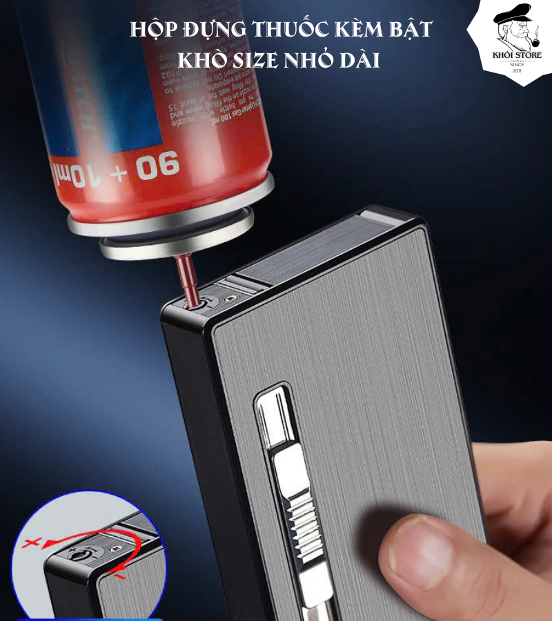 Không còn cảnh phải lục tìm bật lửa mỗi khi cần, với hộp đựng thuốc kèm bật lửa, bạn chỉ cần một thao tác đơn giản là có thể châm thuốc ngay lập tức. Bật lửa tích hợp sử dụng cơ chế đánh lửa hiện đại, dễ dàng kích hoạt chỉ với một tay.