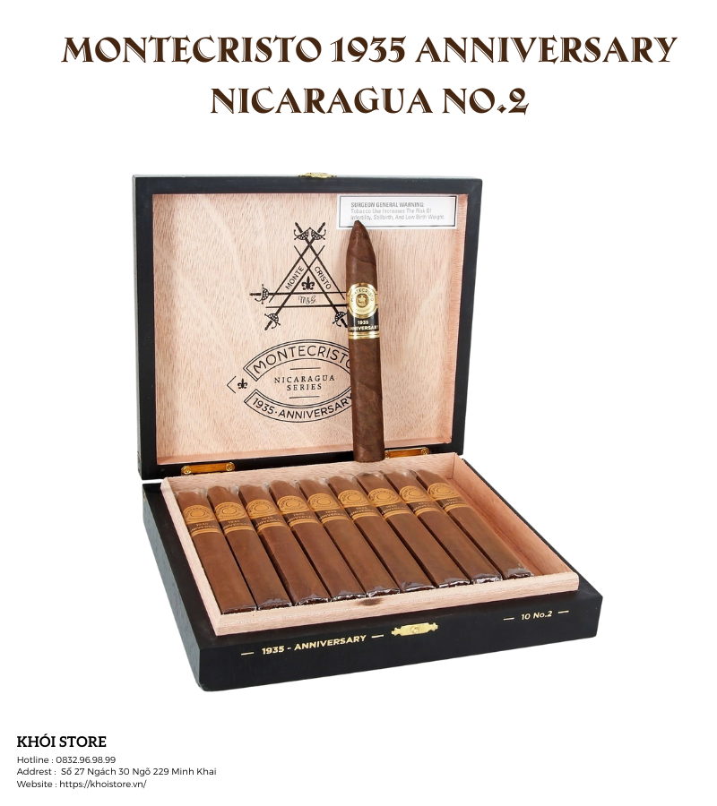 Montecristo 1935 Anniversary Nicaragua No.2 là một tuyệt tác trong thế giới xì gà. Với thiết kế sang trọng, hương vị phong phú và trải nghiệm hút êm ái, đây là lựa chọn lý tưởng cho những ai muốn tận hưởng tinh hoa của xì gà Nicaragua. Nếu bạn là một tín đồ cigar, đừng bỏ lỡ cơ hội trải nghiệm dòng xì gà đẳng cấp này.