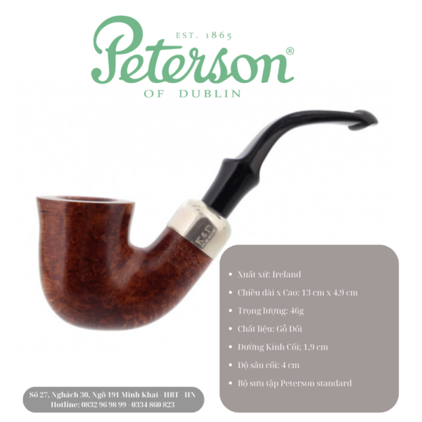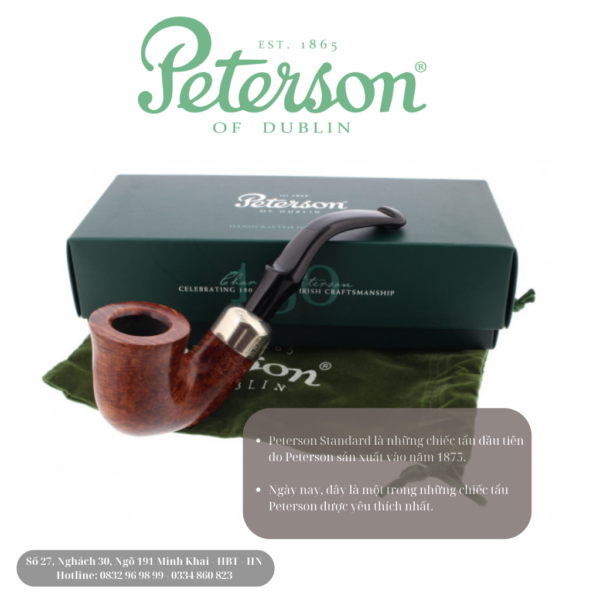 Peterson Standard là những chiếc tẩu đầu tiên do Peterson sản xuất vào năm 1875. Ngày nay, đây là một trong những loại tẩu Peterson được yêu thích nhất. Chúng đi kèm với bình chứa nổi tiếng, cung cấp làn khói khô và trong lành. Trong dòng sản phẩm “Hệ thống tiêu chuẩn”, các ống có một giá đỡ quân đội với dây đeo bằng niken.