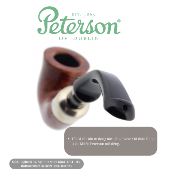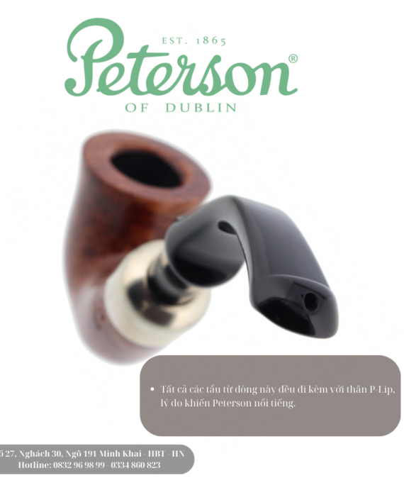 Tất cả các ống của dòng này đều có thân P-Lip, lý do khiến Peterson nổi tiếng. Ống ngậm đặc biệt này hướng khói về phía vòm miệng, giúp trải nghiệm hút thuốc trở nên thoải mái hơn. Không giống như loại cuống đuôi cá cổ điển, loại này giúp ngăn ngừa bỏng lưỡi.