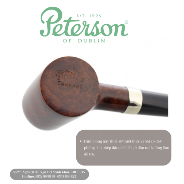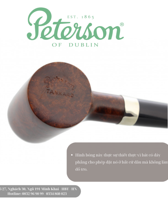 Peterson Tankard là một ống tẩu bằng sáp có hình dáng Poker. Hình bóng này thực sự thiết thực vì chiếc bát có đáy phẳng cho phép bạn đặt nó ở bất cứ đâu mà không làm đổ tàn.