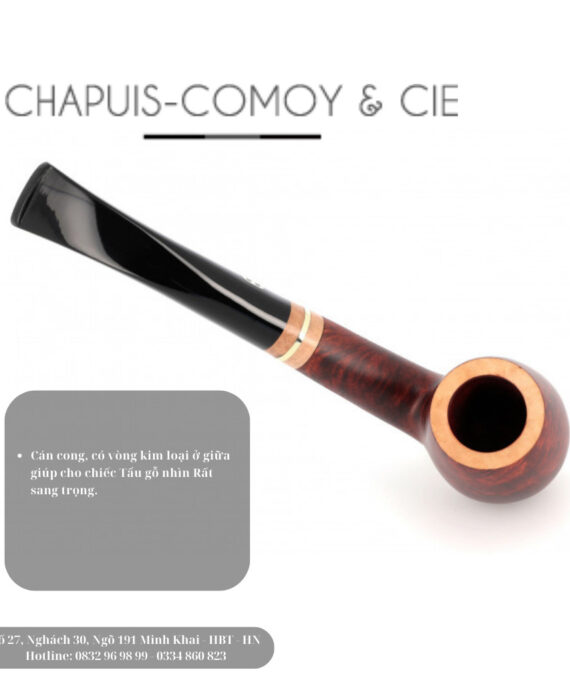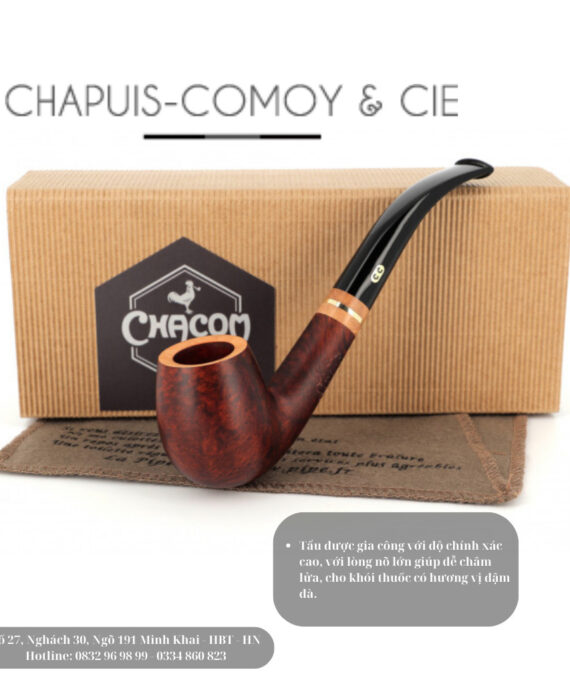 Chuôi đã được gia cố bằng một vòng đồng và vòng gỗ thạch nam đẹp mắt. Cái này cho phép lắp ráp chắc chắn và mang lại nét sang trọng cho tẩu. Nó được trang bị một thân bằng acrylic với bộ lọc kim loại, điều khá hiếm thấy trên các tẩu của thương hiệu Chacom.