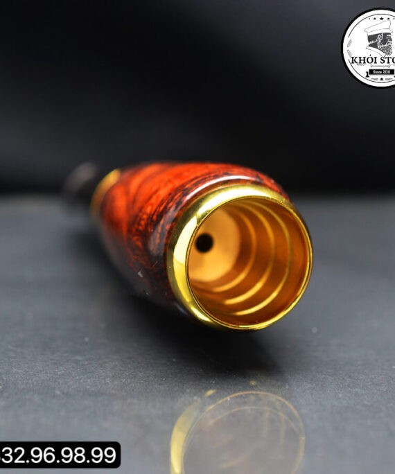 - Thiết Kế Sang Trọng: Với sự kết hợp giữa chất liệu gỗ cao cấp và lớp mạ vàng, tẩu không chỉ là công cụ chức năng mà còn là một món phụ kiện thể hiện sự tinh tế và đẳng cấp của người dùng.
