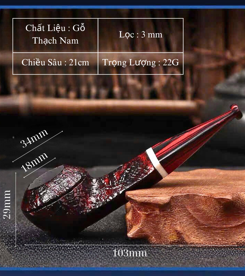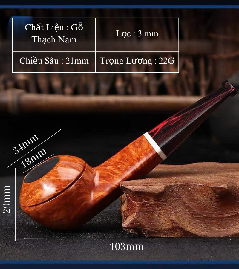Với lõi lọc 3mm và thiết kế khoang hút chuẩn, sản phẩm cho luồng khói êm, sạch, không gắt, giúp người dùng thưởng thức trọn vẹn hương vị thuốc lá mà không bị át bởi tạp chất. Lỗ dẫn khói được khoan chính xác, đảm bảo độ thông thoáng và không bị nghẽn sau thời gian dài sử dụng. Ngoài ra, nhờ trọng lượng nhẹ và dáng công vừa phải, tẩu rất dễ cầm và ngậm lâu mà không gây mỏi – phù hợp với cả việc hút thư giãn ban ngày hay thưởng thức thuốc lá vào buổi tối yên tĩnh.