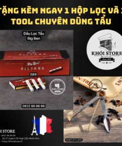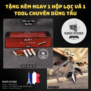 Để nâng cao trải nghiệm sử dụng, sản phẩm được tặng kèm với 1 hộp lọc và 1 tool. Hộp lọc tẩu 9mm giúp giữ cho luồng không khí và khói được lọc sạch, giảm bớt tạp chất và giữ cho chất lượng thuốc không bị ảnh hưởng. Tool đi kèm giúp bạn dễ dàng làm sạch và bảo trì tẩu, đảm bảo sản phẩm luôn hoạt động tốt và duy trì độ bền lâu dài.