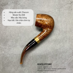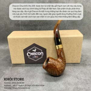 Chacom Churchill U No 268 được làm từ chất liệu gỗ thạch nam với màu nâu bóng mịn được xách tay chính hãng từ Pháp về Việt Nam. Sản phẩm thuộc phân khúc hàng cao cấp, tẩu xì gà Chacom là một trong những loại tẩu được các quý ông đam mê xì gà yêu thích từ trước đến nay, ngoài việc giúp người dùng thưởng thức xì gà và thuốc sợi một cách trọn vẹn nhất nó còn giúp chủ nhân khẳng định đẳng cấp.