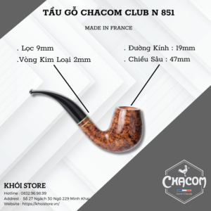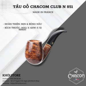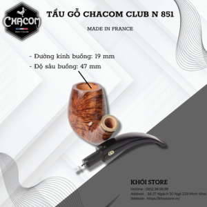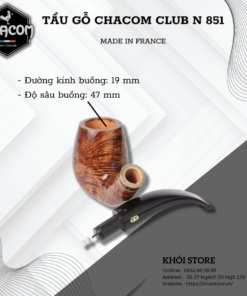 Chacom Club N 851 là một trong những mẫu tẩu gỗ cao cấp đến từ thương hiệu Chacom nổi tiếng của Pháp. Chiếc tẩu này không chỉ là một dụng cụ hút thuốc đơn thuần mà còn là một tác phẩm nghệ thuật thủ công tinh xảo, mang đậm phong cách cổ điển và sang trọng.