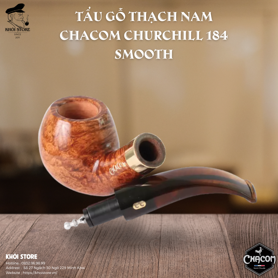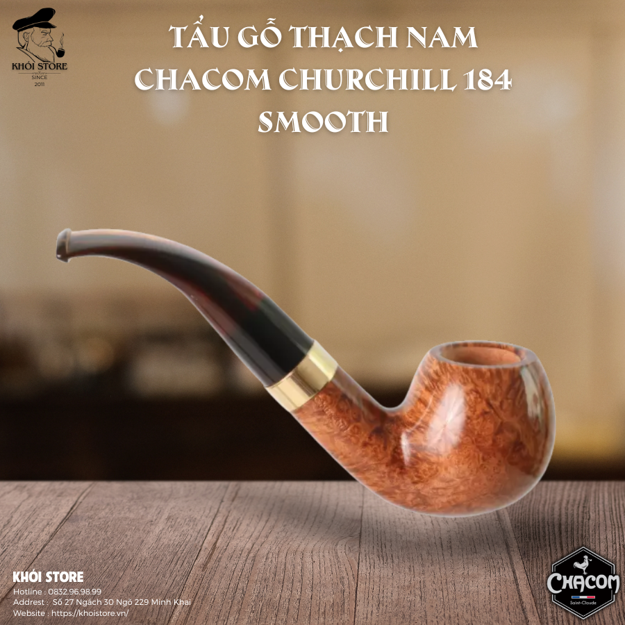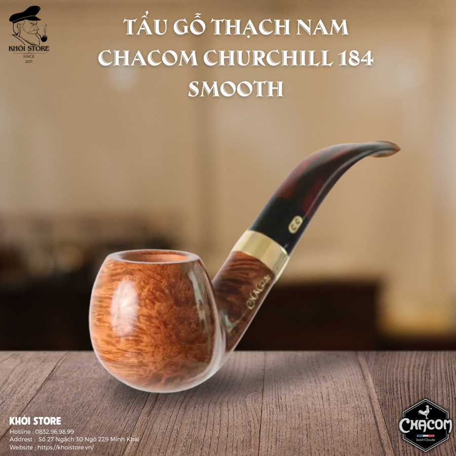 Tẩu Gỗ Thạch Nam Chacom Churchill 184 Smooth là một mẫu tẩu cao cấp đến từ thương hiệu danh tiếng Chacom – Saint-Claude, Pháp. Đây là dòng sản phẩm mang đậm dấu ấn cổ điển, được đặt tên theo cố Thủ tướng Anh Winston Churchill – một biểu tượng nổi tiếng gắn liền với hình ảnh điếu tẩu trên tay.
