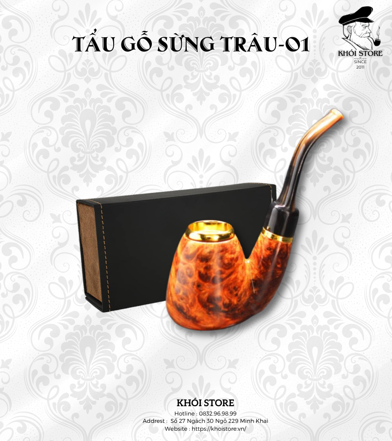Tẩu được sản xuât từ gỗ cao cấp không cháy ngay khi ở nhiệt độ cao, hút ẩm sẽ giúp cho cối được cháy tốt hơn. Với chiếc tẩu gỗ sừng trâu – 01 với kích thước vừa vặn. Có thể hút kèm xì gà hoặc bạn cũng có thể sử dụng thuốc lá hút tẩu.