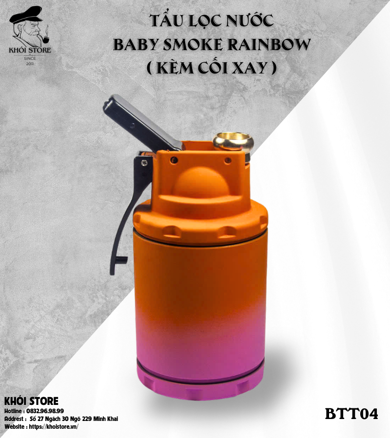 Nếu bạn đang tìm kiếm một chiếc tẩu lọc nước nhỏ gọn, tiện dụng nhưng vẫn mang lại trải nghiệm hút “êm ái – sạch – sướng”, thì Baby Smoke Rainbow – BTT04 chính là lựa chọn không thể hoàn hảo hơn. Với thiết kế độc đáo, màu sắc gradient trẻ trung và công năng vượt trội, chiếc tẩu này đang làm mưa làm gió trong cộng đồng hút hiện đại.