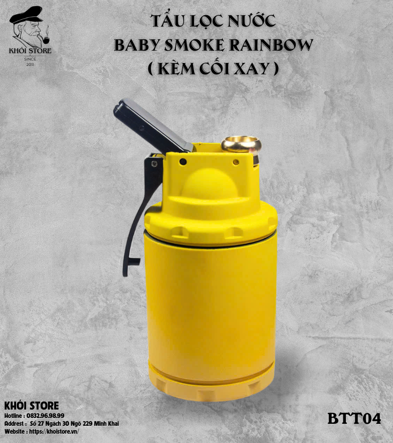 Chiếc tẩu Baby Smoke Rainbow sở hữu ngoại hình độc đáo, lấy cảm hứng từ hình dạng của lựu đạn khói, mang lại cảm giác mạnh mẽ, cá tính và đầy chất “urban style”. Sản phẩm có nhiều phiên bản màu sắc nổi bật như hồng vàng, cam tím và vàng chanh – phù hợp với mọi phong cách và cá tính của người dùng.