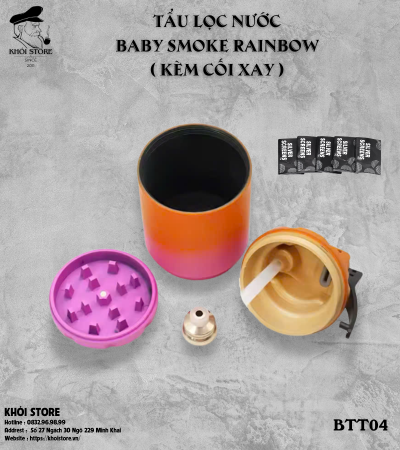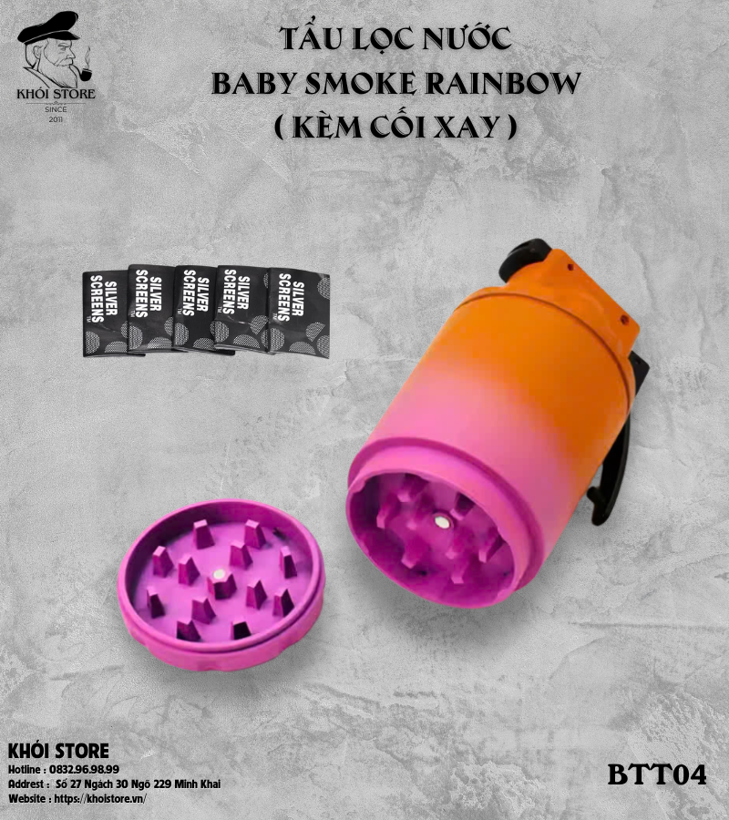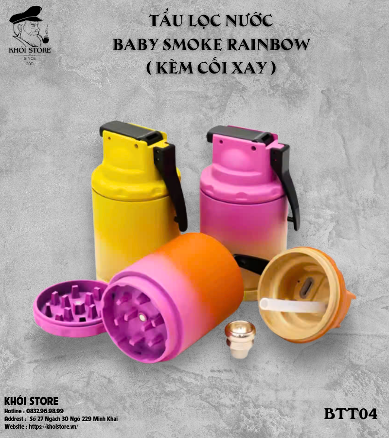 Tẩu Lọc Nước Baby Smoke Rainbow (Kèm Cối Xay) – Thiết Kế Nhỏ Gọn, Hiệu Năng Vượt Trội