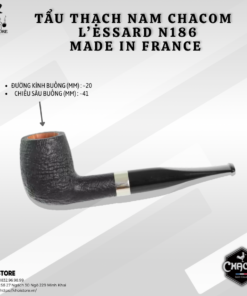 Chacom L’Essard N186 sở hữu kích thước tiêu chuẩn, buồng hút vừa phải, phù hợp với nhiều loại thuốc tẩu phổ biến trên thị trường. Thiết kế này giúp người dùng dễ kiểm soát tốc độ cháy, tránh hiện tượng quá nóng hay tắt thuốc giữa chừng.