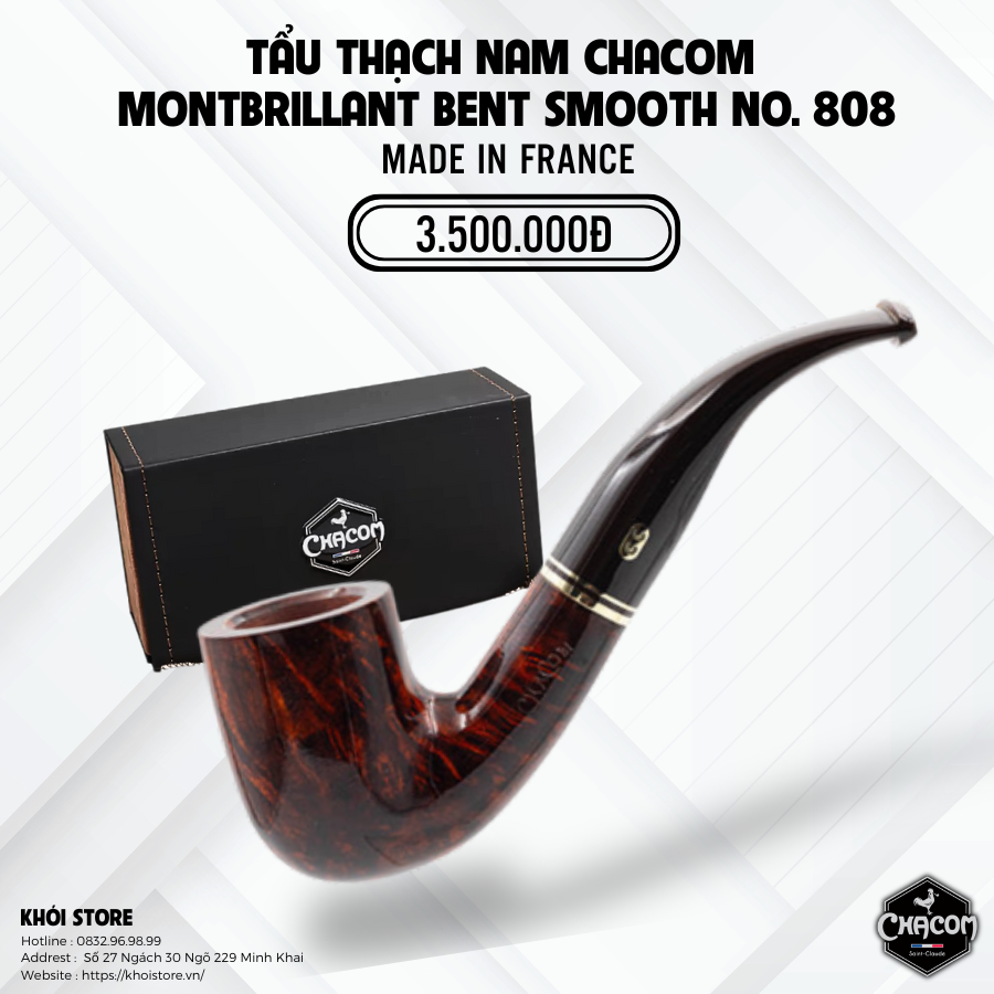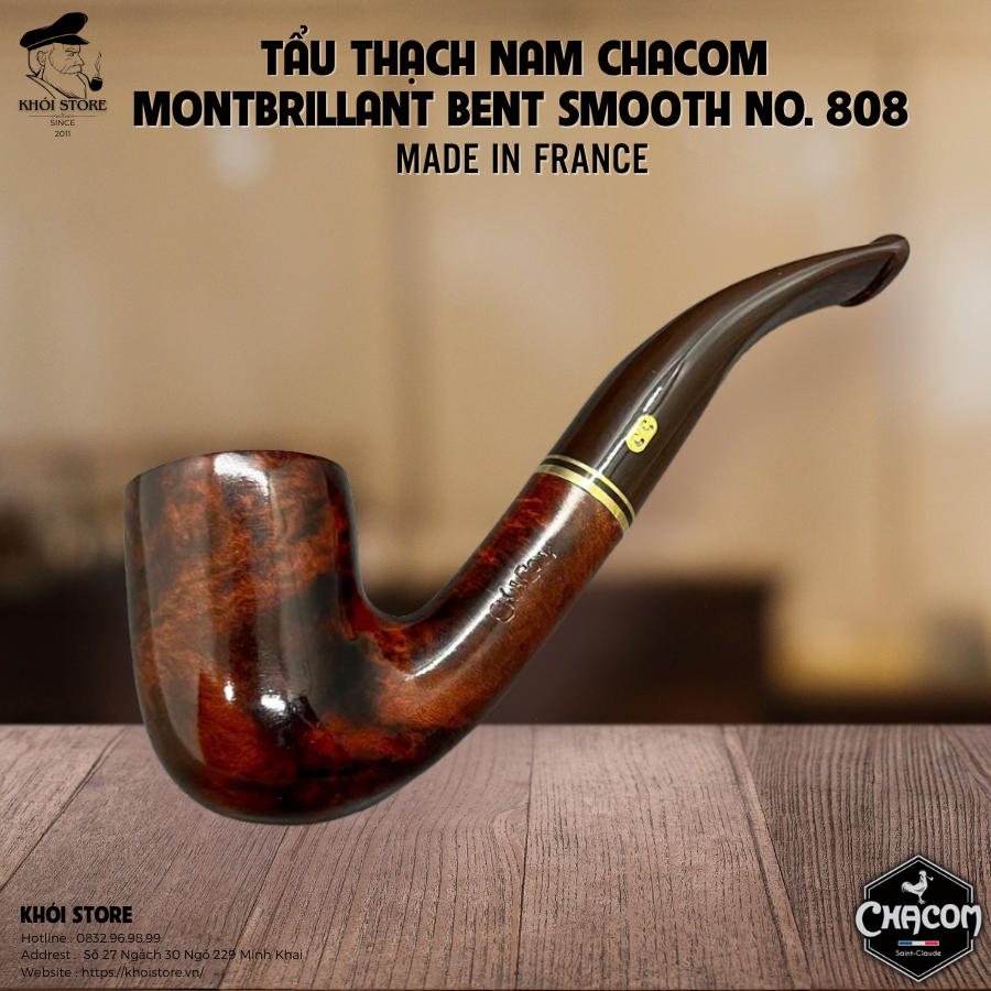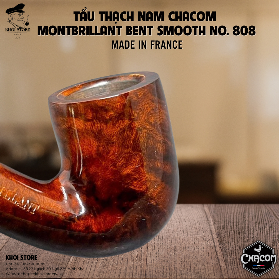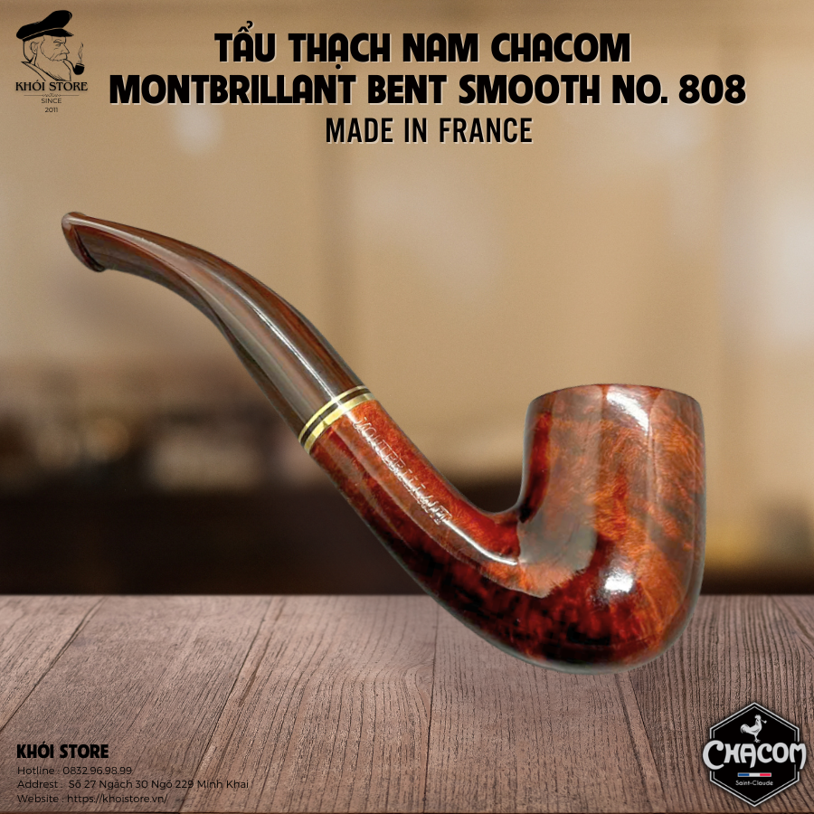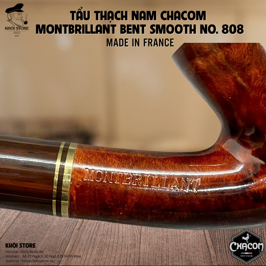 Dòng sản phẩm Montbrillant Bent Smooth No. 808 là một ví dụ điển hình cho sự tinh xảo và lịch lãm mà Chacom luôn hướng đến. Đây là mẫu tẩu uốn cong nhẹ nhàng, dễ sử dụng, có tính thẩm mỹ cao và đặc biệt phù hợp với cả người chơi tẩu lâu năm lẫn người mới bắt đầu.