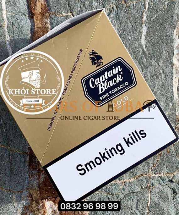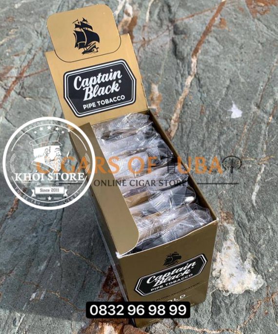 Hộp hoặc túi: Captain Black Gold thường được đóng gói trong hộp hoặc túi kín, thiết kế để bảo quản thuốc tẩu và giữ cho nó tươi mới. Đóng gói thường có thiết kế trang nhã và dễ nhận diện.