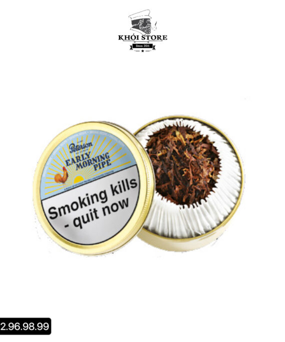 Gói: Peterson Early Morning Pipe thường được đóng gói trong hộp thiếc hoặc túi nhựa kín chất lượng cao. Bao bì này giúp bảo quản thuốc tẩu tốt hơn và giữ cho nó tươi mới. Hộp thiếc hoặc túi zip-lock giúp bảo vệ thuốc khỏi yếu tố bên ngoài và duy trì độ ẩm lý tưởng.