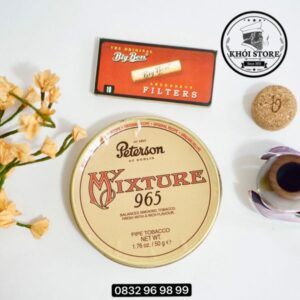 Hộp: Peterson My Mixture 965 thường được đóng gói trong hộp thiếc chất lượng cao hoặc túi nhựa kín. Bao bì này giúp bảo quản thuốc tẩu tốt hơn và giữ cho nó tươi mới. Hộp thiếc hoặc túi zip-lock giúp bảo vệ thuốc khỏi yếu tố bên ngoài và duy trì độ ẩm lý tưởng.